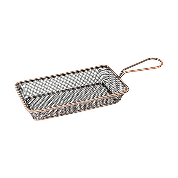 Rectangular Service Basket Antique Copper 190x90x35mm. Add a rustic edge to your serving style with our Brooklyn service baskets from Moda that are available in a variety of shapes & sizes. Use our greaseproof paper to complement your dish and bring it to life. Hand wash only.