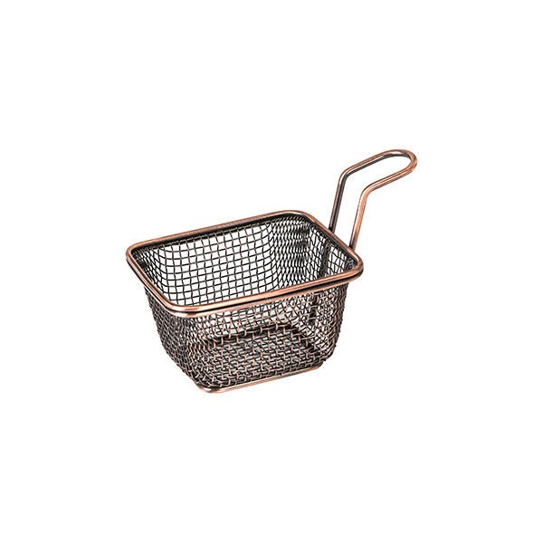 Rectangular Service Basket Antique Copper 80x60x65mm. Add a rustic edge to your serving style with our Brooklyn service baskets from Moda that are available in a variety of shapes & sizes. Use our greaseproof paper to complement your dish and bring it to life. Hand wash only.