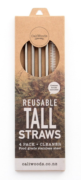 Straws S/S Reusable Tall – Pkt of 4 with Brush